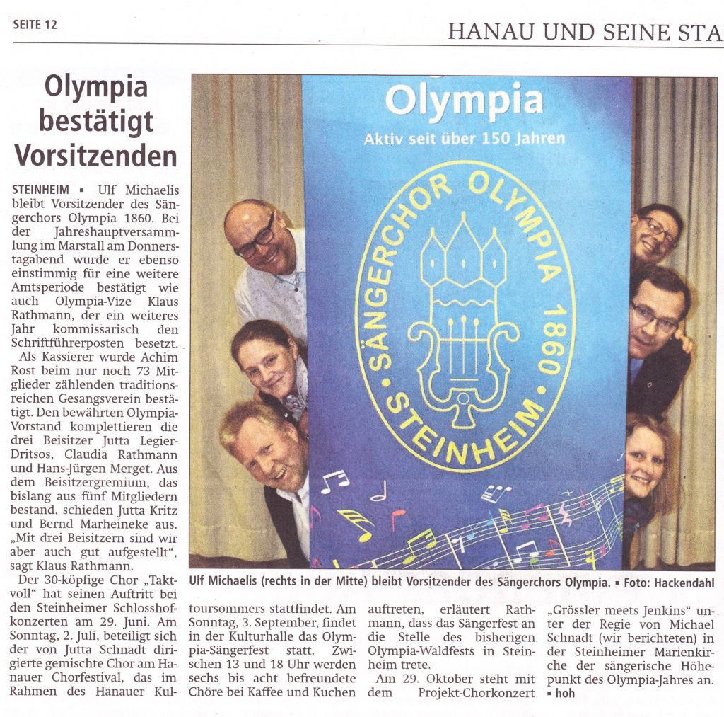 Auf der diesjährigen Hauptversammlung wurde der Vorstand wieder im Amt bestätigt. Da zwei Beisitzer aufgehört haben, besteht der Vorstand nun aus 6 Personen.