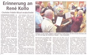 In der letzten Chorprobe unter seiner Leitung sangen die Teilnehmer die Stücke „Abschiedslied“, „Frohsinn“ und „Freunde“. Danach erzählte Herr Wissel über einige gelungene Auftritte, die ihm als besonders herausragend im Gedächtnis geblieben waren, und die anwesenden Vereinsvorstände überreichten ihm nach kurzer Ansprache die Abschiedspräsente.