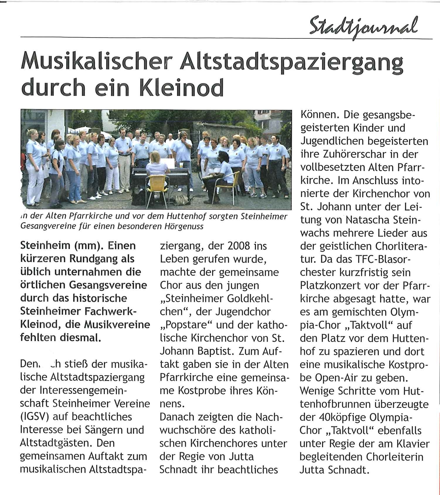 Ein schöner Bericht im Stadtjournal Steinheim über den taktvollen, musikalischen Altstadtspaziergang am 04.09.2011